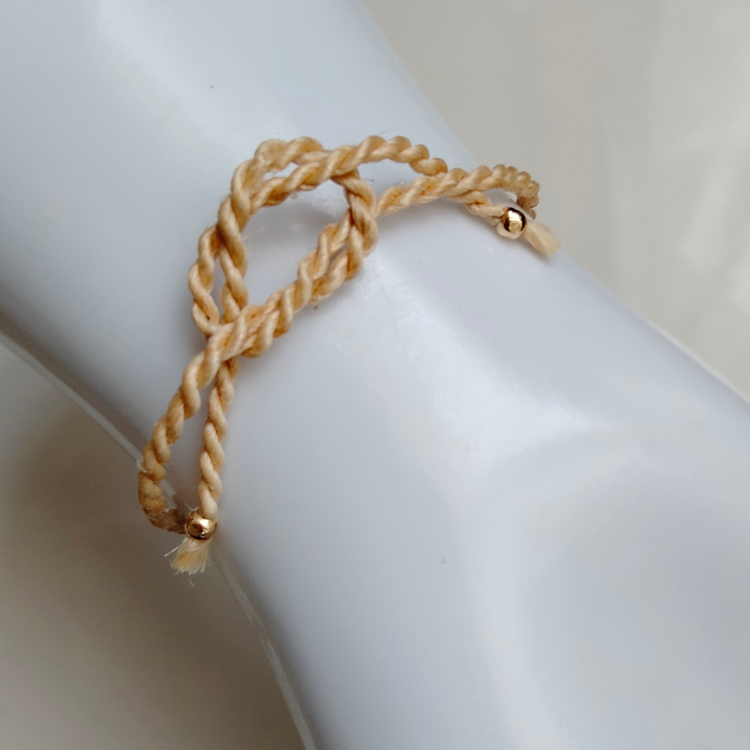 撚り合わせ紐から手作りしています。